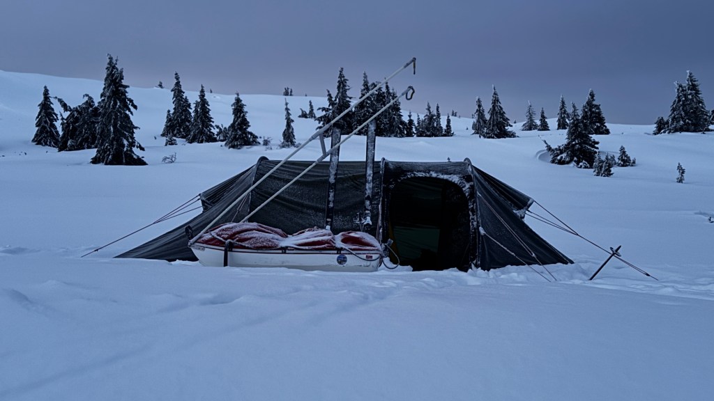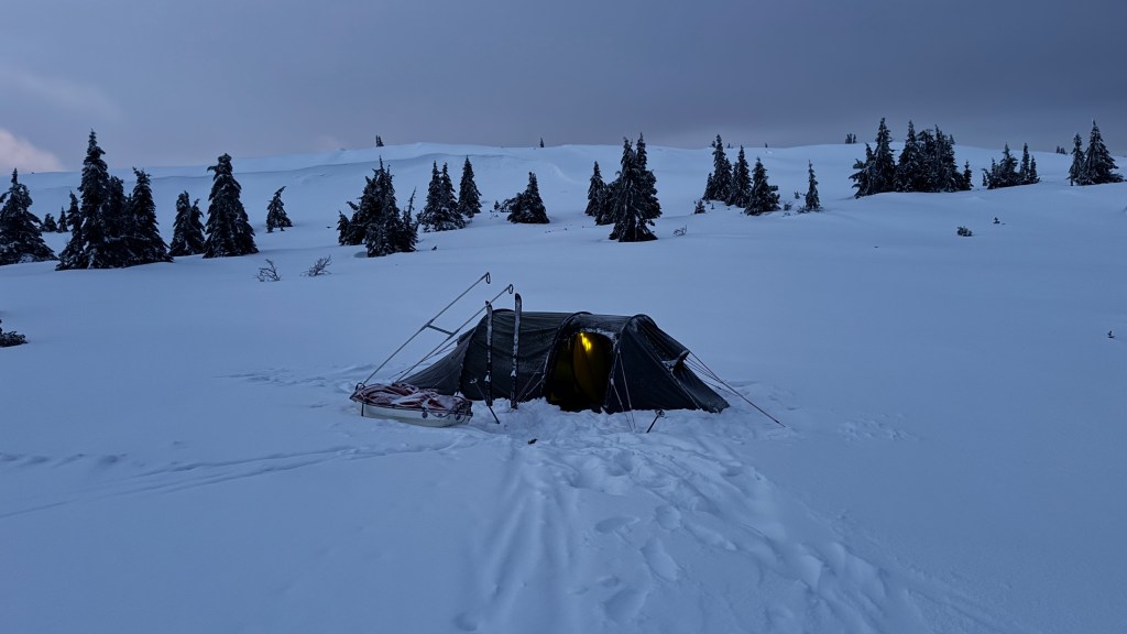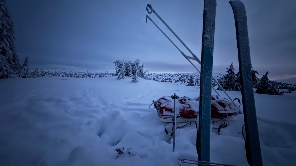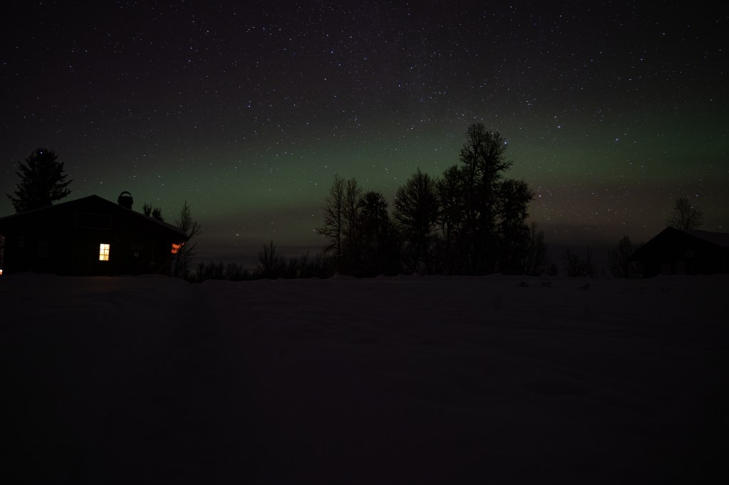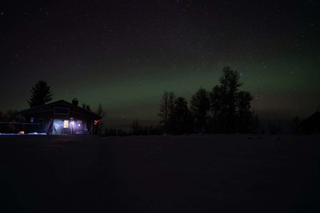 Irgendwann wird es mir dann doch zu frisch und ich gehe rein und koche mir mein Abendessen. Später kommt noch ein Niederländer auf Schneeschuhen herein. Wir kommen schnell ins Gespräch und es wird ein echt interessanter Abend, der sogar noch mit Polarlichtern am Horizont zu Ende geht.