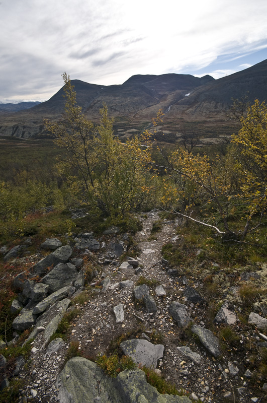 Ich krabbel aus dem Zelt, trete auf und mein rechter Fuss erinnert mich mit einem dumpfen Schmerz gleich an meinen dummen Sturz in der Dunkelheit. Mist, denke ich mir. So ein Scheiß kann auch nur dir passieren, du Trottel! Ich zieh die Schnürsenkel fester. Besser aber immer noch nicht das wahre. Ich kram die Kamera aus dem Rucksack und folge dem Weg ein Stück. Aber diese verdammte Hütte seh ich nicht. Den Tag zuvor waren es 18km die wir gemacht haben. Um die 16km hätten es sein sollen. Bei laufen merk ich das auf Steinen auftreten oder wegrutschen mit dem rechten Fuss eine ganz dumme Idee ist. Zum Glück wollen wir heute nur bis zur Hütte und uns dann nen ruhigen machen. Ich mache noch ein paar Fotos und gehe dann langsam zurück zum Zelt.