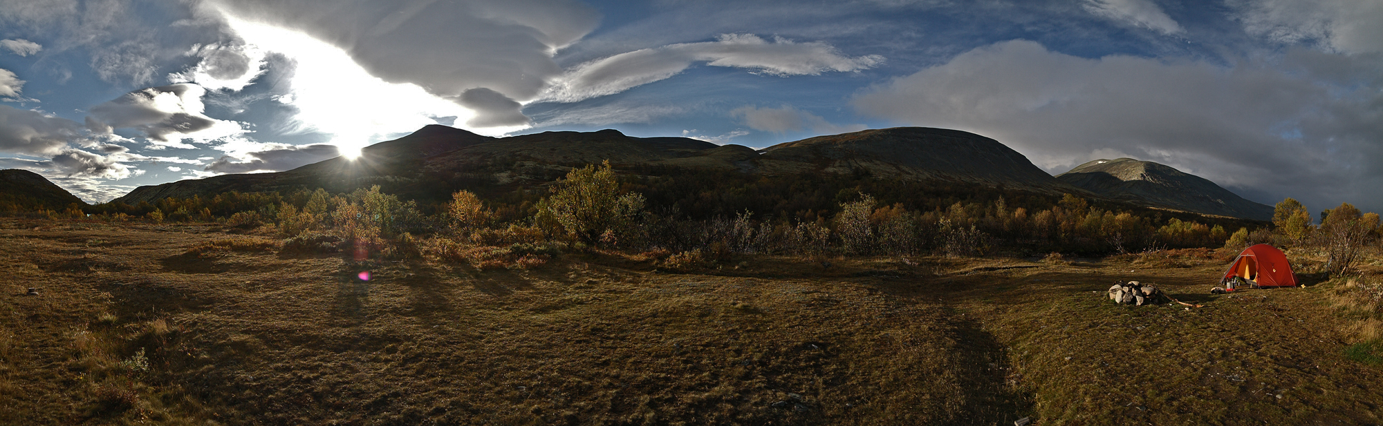 Als wir am Morgen wach werden ist es Windstill und der Regen hat sich auch verdrückt. Ich krieche aus dem Zelt und gehe einem dringenden Bedürfnis nach. Dann wird erstmal Kaffee gekocht. Das Licht ist traumhaft und so wie der Himmel ausschaut wird es ein richtig schöner Tag.