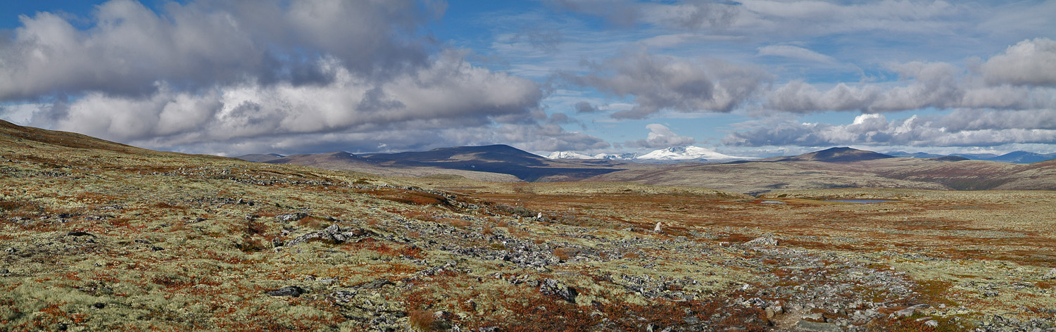 Vor einem erstrecken sich die Berge des Dovre und Dovrefjell-Sundalsfjella Nationalparks und wir dürfenen den Blick auf die Snøhetta genießen, hinter uns ragen die Berge des Rondane in die Höhe und wir mittendrin.
