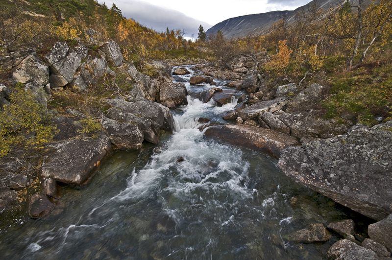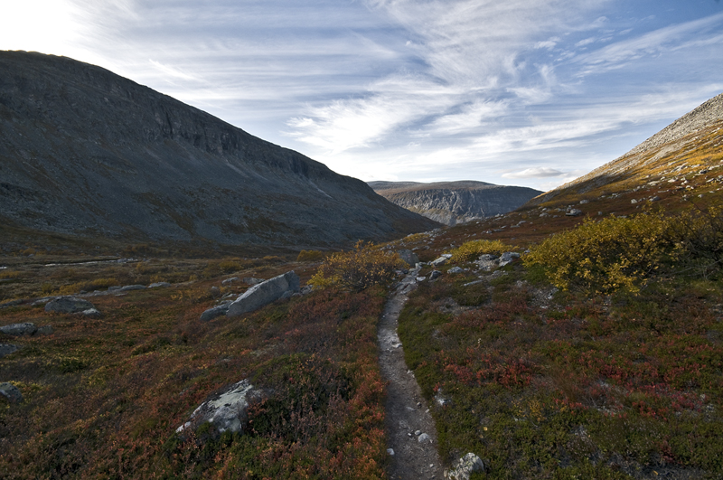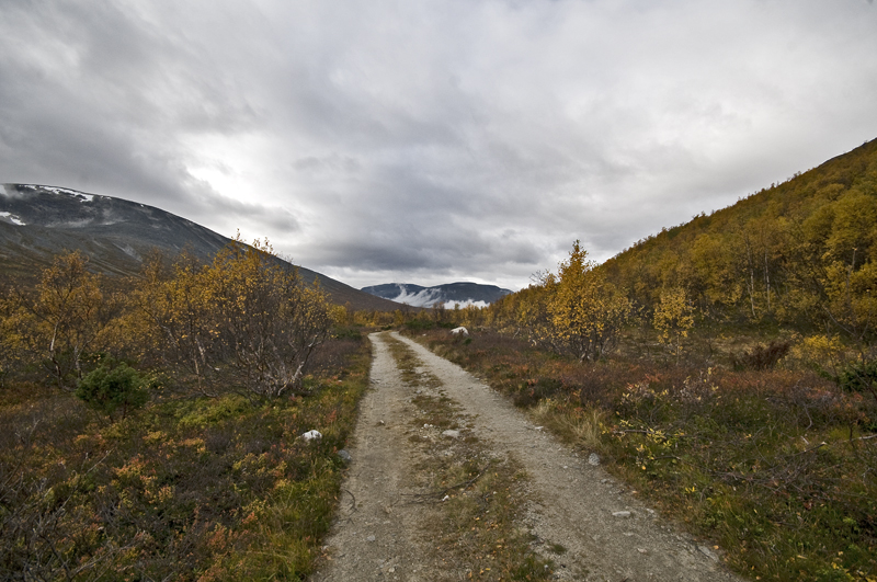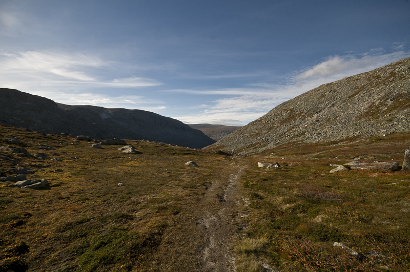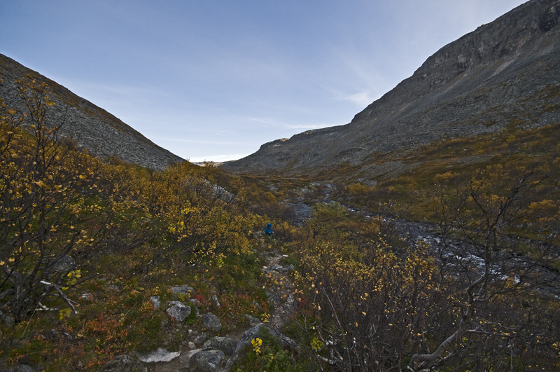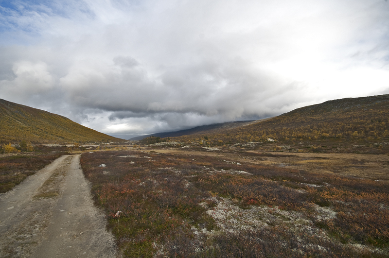Auf den letzten Kilometern durch das Tal zieht es sich hinter uns vom Blåfjellet her kräftig zu und wir überlegen schon ob wir die Regensachen raus kramen müssen.