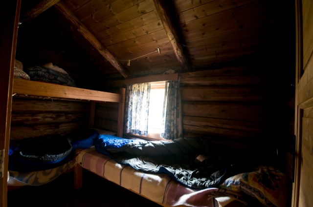 In der Hütte angelangt werfen wir nur noch alles in die Ecke und heizen den Ofen an. Mir tränen nur noch die Augen und ich seh alles in schleiern. Auf dem letzten Stück musste ich einfach ständig den Kopf heben und die nächste Markierung suchen.