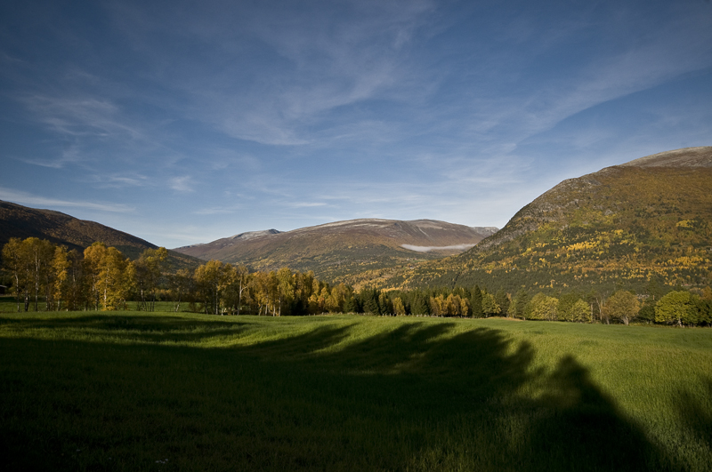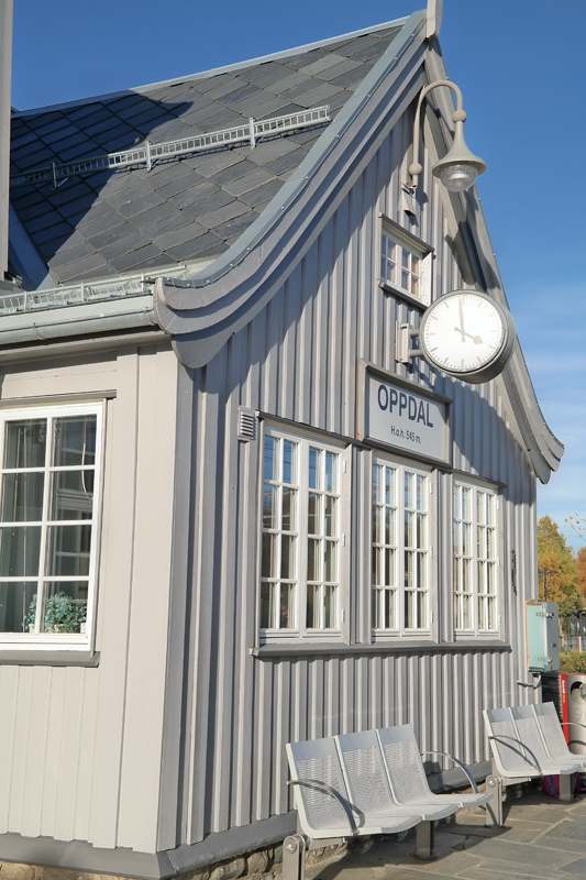 Irgendwo bei Kilometer 12 kommt uns ein Rentnerehepaar mit Enkel entgegen. Sie laufen zu ihrem Auto, steigen ein und wenden ihren Wagen. Aber total zögerlich. Dann fahren sie los. Während ich mir noch denke ob die noch nie Wanderer gesehen haben hält das Fahzeug wieder an und setzt zurück. Dann steigt der Fahrer aus winkt uns zu und ruft auf Norwegisch. Wir haben keine Ahnung was er gesagt hat aber ich winke zurück und laufe zu ihm hinüber. Er will wissen wo wir hin wollen, fragt er auf Englisch. Nach Oppdal entgegne ich ihm. Darauf hin macht er den Kofferaum des Peugeot auf und sagt wir sollen reinspringen. Sie fahren auch in die Richtung. Geil! Der Tag ist gerettet und wir schaffen es wohl doch noch bis um vier zum Bahnhof. Innerhalb von einer halben Stunde machen wir die restlichen 10km und unterhalten uns mit dem Paar über unsere Tour. Neugierig sind sie ja gar nicht und mehrmals fragen die beiden wo wir her kommen. Das wir aus Tyskland kommen können sie aber irgendwie nicht so ganz glauben, da sie im Glauben sind wir kommen aus Holland. Stimmt Holländer haben wir schon ein paar gesehen. So vergeht auch die Zeit schneller. Dann kommen wir nach Oppdal rein und der Kommentar „Welcome in the big City“ scheint hier wohl standard zu sein. Vor allem da alles am lachen ist.