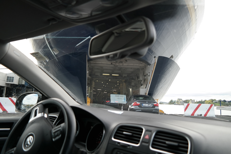 Einige Zeit später kommt auch schon die Durchsage das wir uns auf dem Parkdeck einfinden sollen. Dann öffnet sich auch schon das Tor und wir rollen die Rampe herunter und fahren Richtung Autobahn.