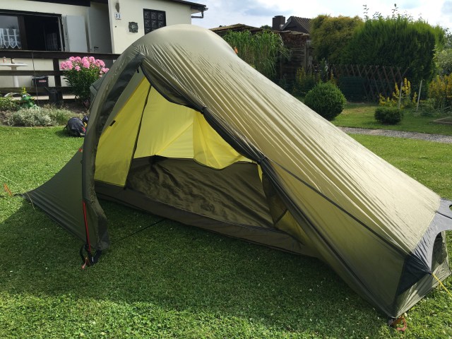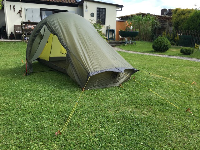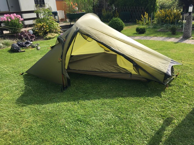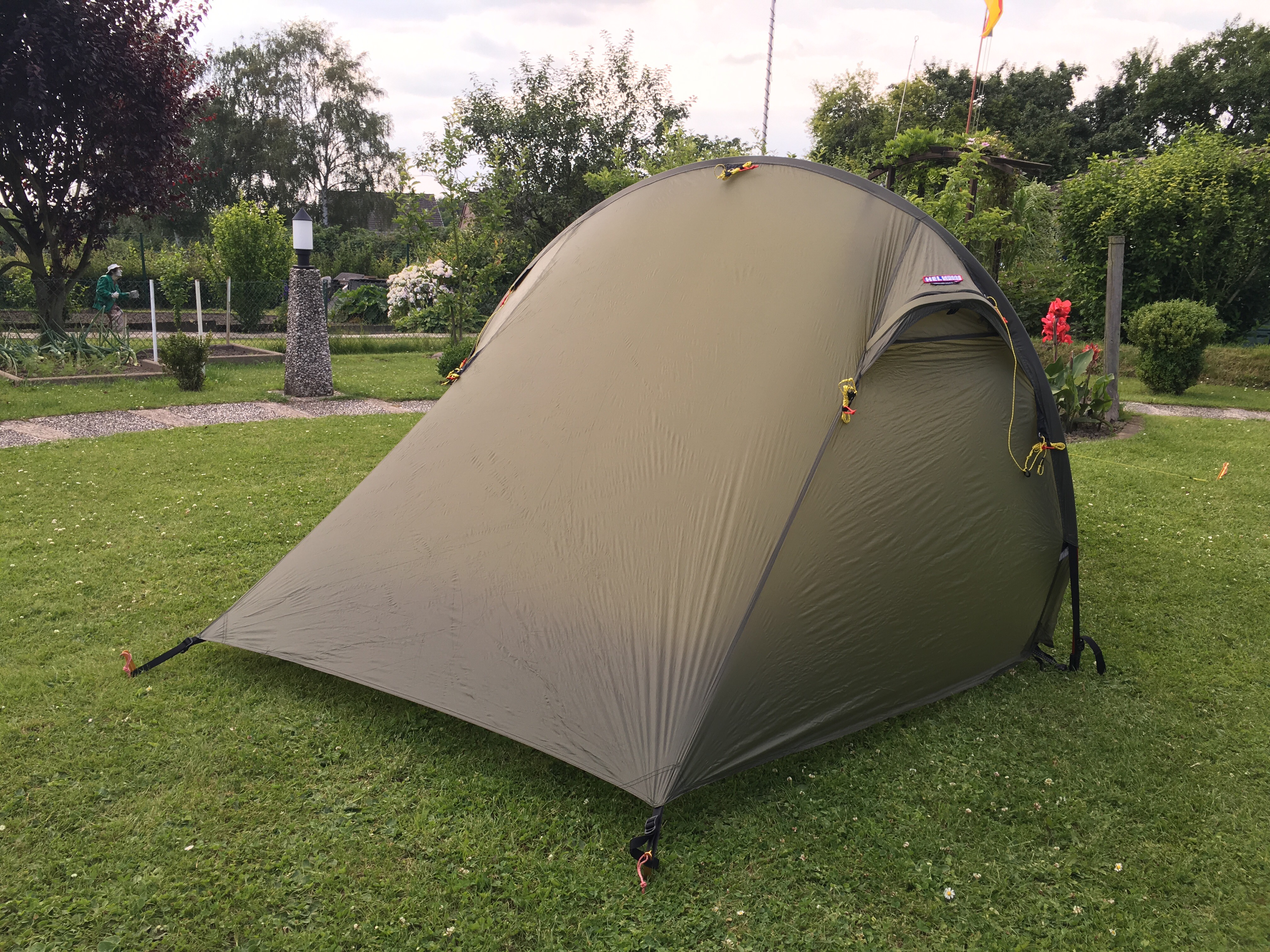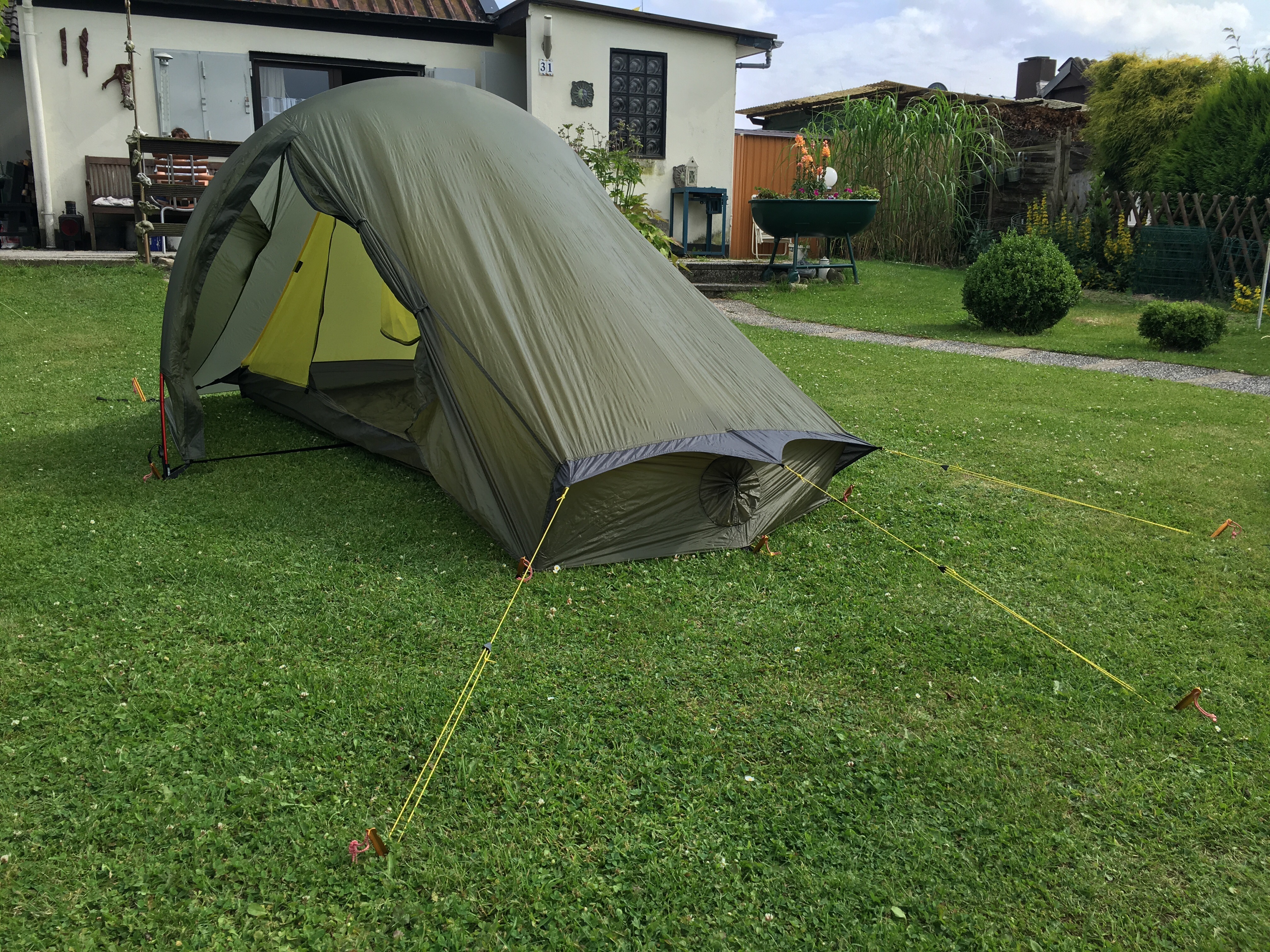 Eigentlich war ich nur für Kleinkram und Beratung im Outdoorladen und dann ist es doch ganz spontan ein Helsport Ringstind Light 2 geworden. Eigentlich hatte ich doch eher mit einem Hilleberg Akto geliebäugelt. Aber als das Ringstind dann im Laden stand und ich den riesigen Innenraum gesehen habe, war sehr schnell klar welches Zelt es werden soll.