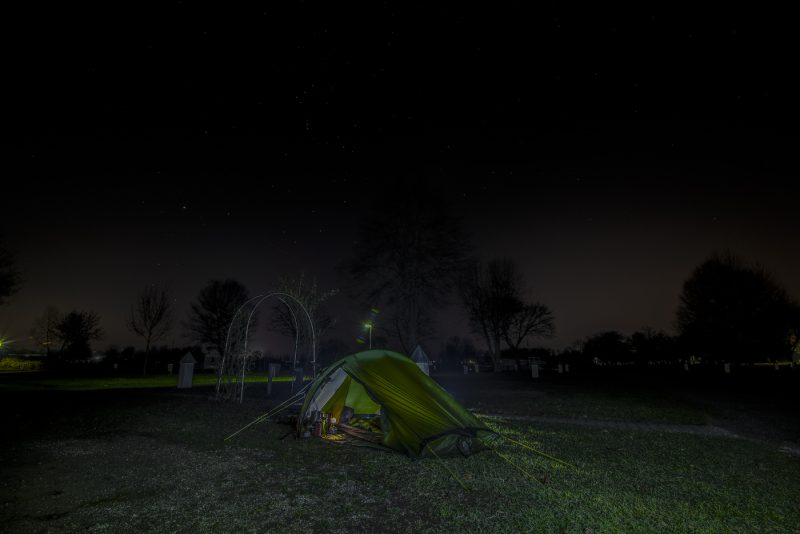 So baute ich in der Dämmerung mein Zelt auf einem verlassenen Campingpark auf und früh am Abend verkroch ich mich in meine Penntüte, denn es wurde langsam echt kalt. Wie kalt die Nacht war zeigte sich mir am nächsten morgen.