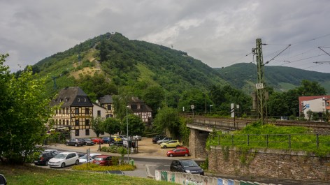 Am Montag erreiche ich gegen 17 Uhr, leider viel später als erhofft, die Stadt Boppard. Ich suche mir einen Parkplatz, schnüre die Wanderstiefel und schultere den Rucksack. Dann geht es die Strasse hinunter zu einem Wegweiser. Ihm folge ich hinein zwischen zwei Häuser und glaube mich in einer Sackgasse zu befinden. Erst beim zweiten genaueren hinschauen entdecke ich den weiteren Weg zwischen zwei Hecken. Ich gehe zwischen dem grün hindurch und sogleich steigt der Weg vor mir an.