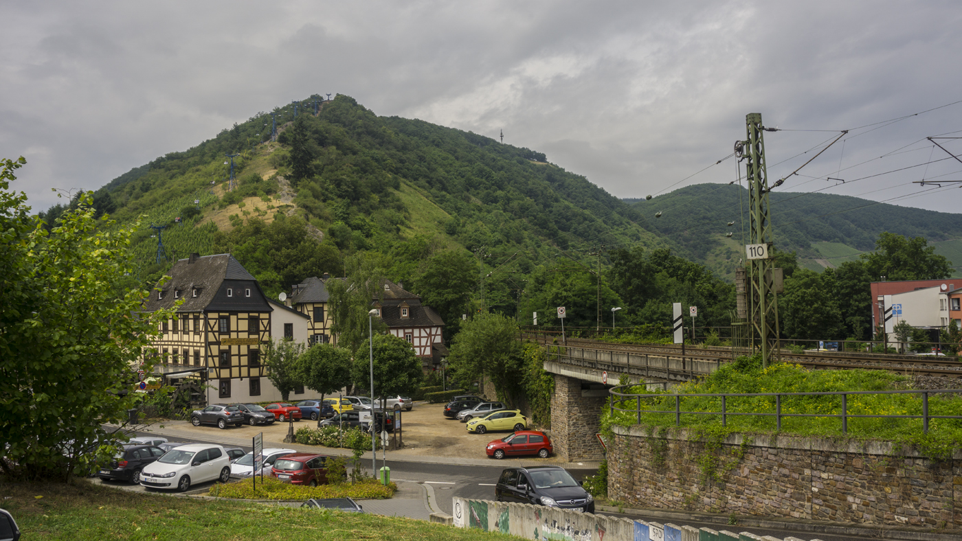 Es geht die Strassen durch die Weinberge hinab zur B9. Überall in den Steillagen sind die Winzer mit ihren Reben beschäftigt.