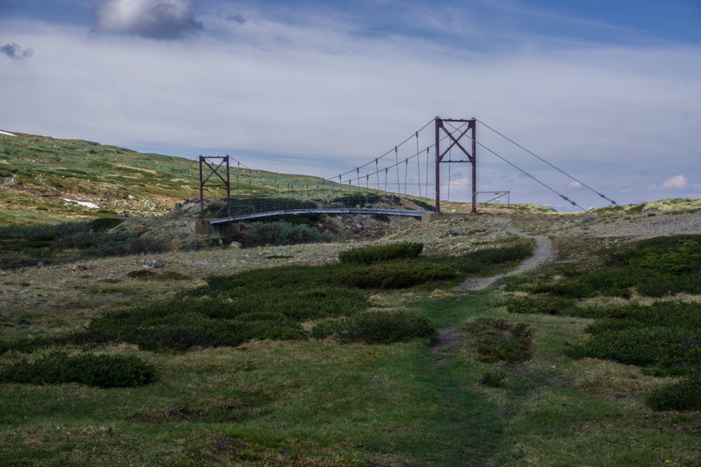 Nach anderthalb Stunden stehe ich dann an der Ganzjahresbrücke die über den Fluss führt der tosend in den See mündet. Die Brücke eine Hängekonstruktion aus Holz ist der Knaller und ich habe richtig Spass beim überqueren.