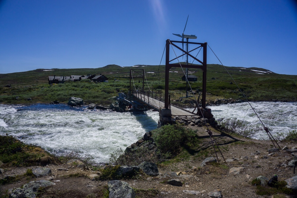 Nach dem Ruhetag machen wir uns auf zur Krossobahn, Nordeuropas ältester Seilbahn. Mit dieser fahren wir zur Bergstation und wandern von dort zur 8km entfernten Helberghytta vom DNT. Die Hütte ist nach Claus Helberg, einem bekannten norwegischen Widerstandskämpfer aus dem zweiten Weltkrieg benannt, der hier auch viele Jahre Hüttenwart war. Am Abend kommt noch eine junge Norwegerin herein. Sie ist mal eben von Rjukan die Serpentinen hoch zur Hütte gelaufen um hier nach der Arbeit den Abend ausklingen zu lassen. Wir sitzen lange zusammen in der Stube und unterhalten uns, aber irgendwann wird es Zeit ins Bett zu verschwinden. Morgen wird wieder ein langer Tag.