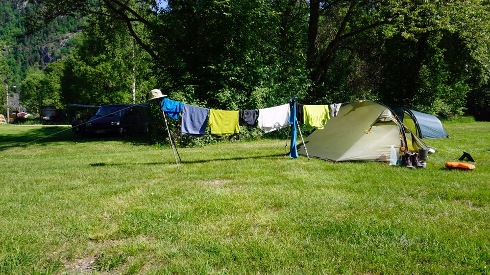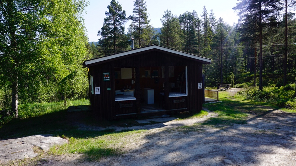 Nach unserem Ruhetag, der sehr gut tat, geht es zusammen weiter nach Åmot. Es geht immer der Strasse nach, die langsam aber sicher ansteigt. Es geht von knapp 100m auf fast 500m. Dementsprechend ziehen sich die 23km auch. Ich komme völlig geschlaucht am Spar in Åmot an und hole mir dort erstmal eine Tüte Milch. Dann geht es weiter in Richtung des Groven Campings. Martin schicke ich eine Nachricht das ich bereits am Camping bin und dort auf ihn warte. Als Martin dann ankommt mieten wir uns eine von den kleinen Hütten für die Nacht.