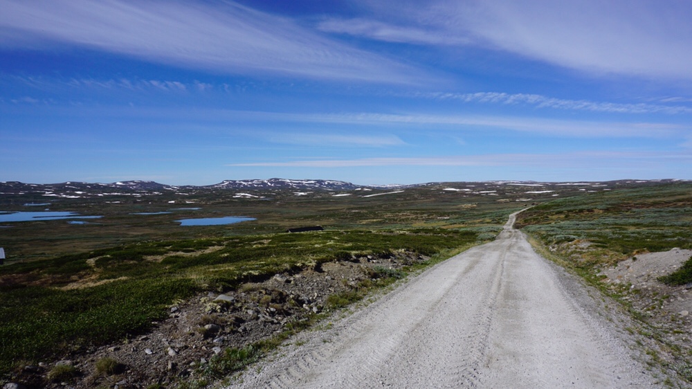 Nach der Nacht an der Tuva, wo wir unter freiem Himmel biwakiert hatten, machen wir uns auf den Weg die 20km nach Geilo hinter uns zu bringen. Wir laufen ewig der Schotterpiste nach und kommen dann noch mit den Insassen eines SUV ins Gespräch die neben uns halten. Es sind die Besitzer der Tuva. Er deutscher, Sie Norwegerin. Wir unterhalten uns lange und über alles mögliche. Dann geht es weiter hinab ins Skurdalen entlang der Strasse und weiter über die alte Strasse nach Geilo. Am Nachmittag erreichen wir dann auch das Geilo Vandrerhjem wo ich ein oder zwei Ruhetage einlegen will. Die letzten 21 Tage haben ein wenig ihre Spuren hinterlassen und ich will bevor ich ins Jotunheimen starte die Akkus einmal richtig aufladen.