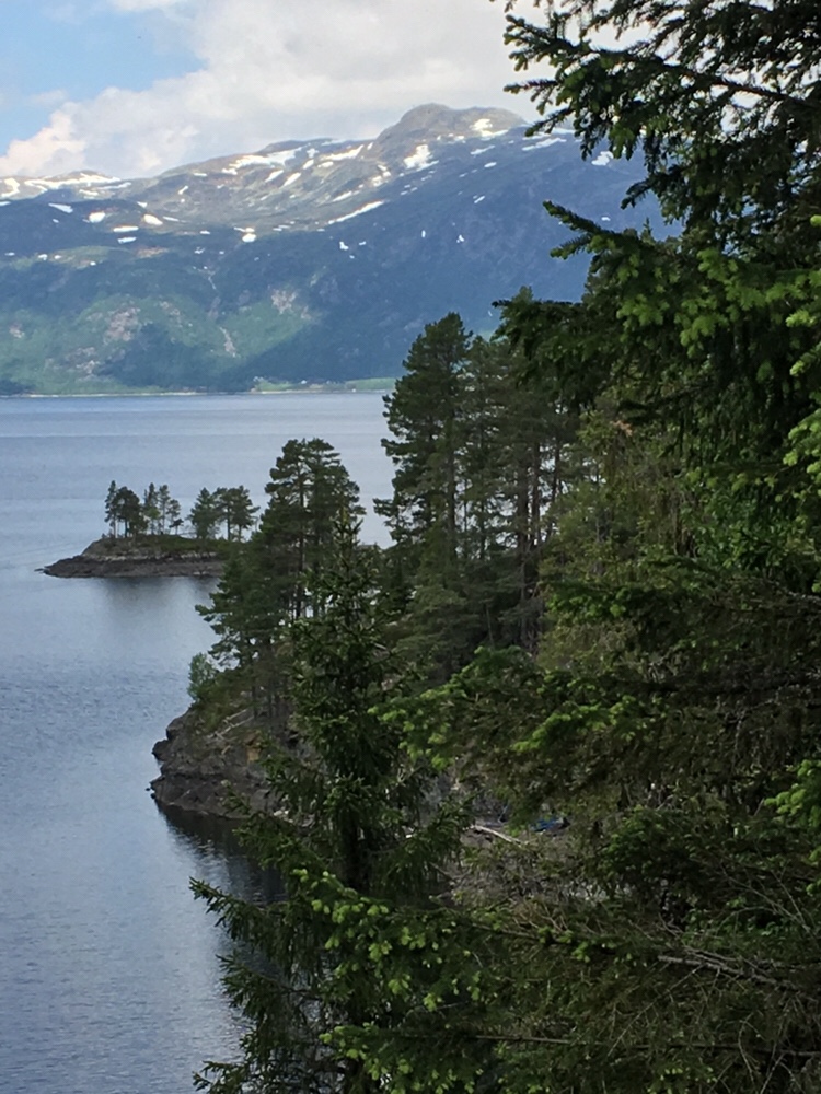 Die ganze Nacht ruft irgendwo aus dem Tal ein Kuckuck. Das Vieh ist unentwegt zu Gange und hält mich die Nacht über wach. Ich bin froh als wir um halb neun zur Mårbu aufbrechen. Hinter der Kalhovd steigt der Weg direkt steil über den Berg an. Es ist zwar echt anstrengend aber der Weg macht tierisch Spaß zu laufen. Ständig bekommt man ein Panorama über den Mår See geboten und ich geniesse den Weg einfach nur. Martin ist ein ganzes Stück hinter mir. Der gute lässt den Anstieg etwas ruhiger angehen.