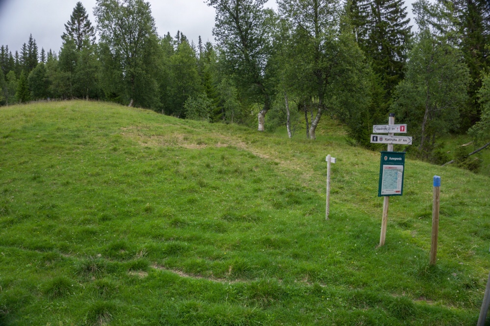 Am Wegweiser zur Græslihytta mache ich noch einmal kurz Pause. Nun geht es von 280m hoch auf 600m und zur Hütte sind es keine drei Kilometer mehr.