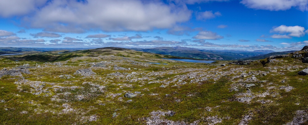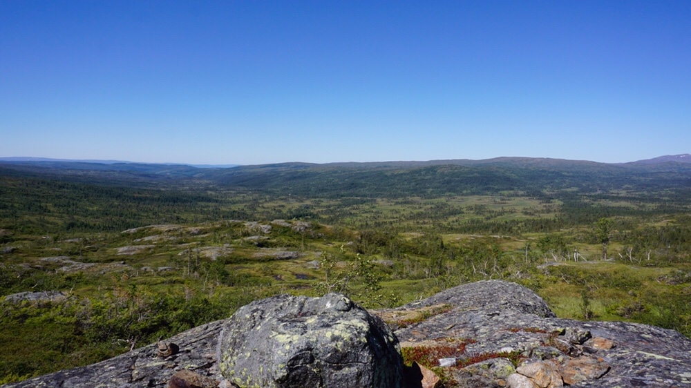 Dann geht es weiter über die rechte Seite des Melshogna und rauf auf 830m. Hier mache ich kurz Rast, denn der Weg führt nun gute 200hm etwas steil hinab.