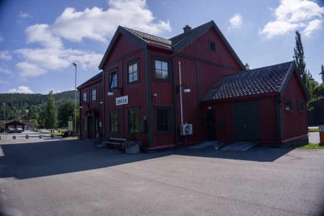 Als der Zug in Namskogan hält und ich aussteige komme ich mir ein wenig verloren vor. Hier steht ein kleines altes Bahnhäuschen an dem ein Gleis vorbei führt.
