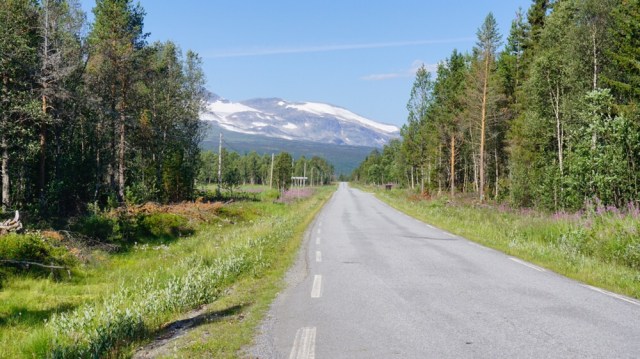 Am nächsten morgen mache ich mich sehr früh auf. Durch meine Planänderung stehen nun 38 Kilometer Strasse bis nach Hattfjelldal auf dem Programm. Der Tag soll wieder richtig heiss werden und ich pfeife aus dem letzten Loch als ich am Nachmittag in Hattfjelldal ankomme.