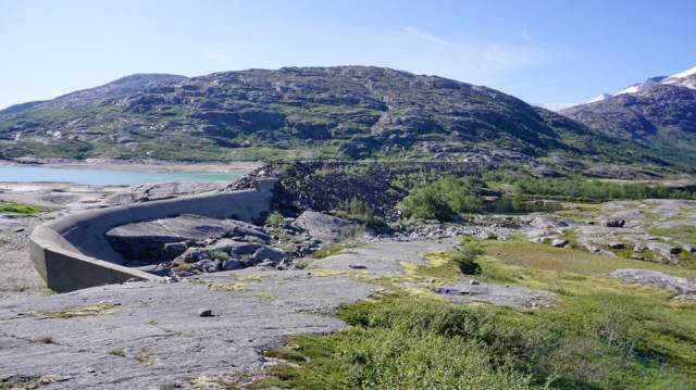 Um kurz vor zehn überquere ich den Staudamm des Sees und kürze meinen Weg um ein paar Kilometer auf diese Weise ab und ich laufe querfeldein in Richtung der Nordlandsrouta.