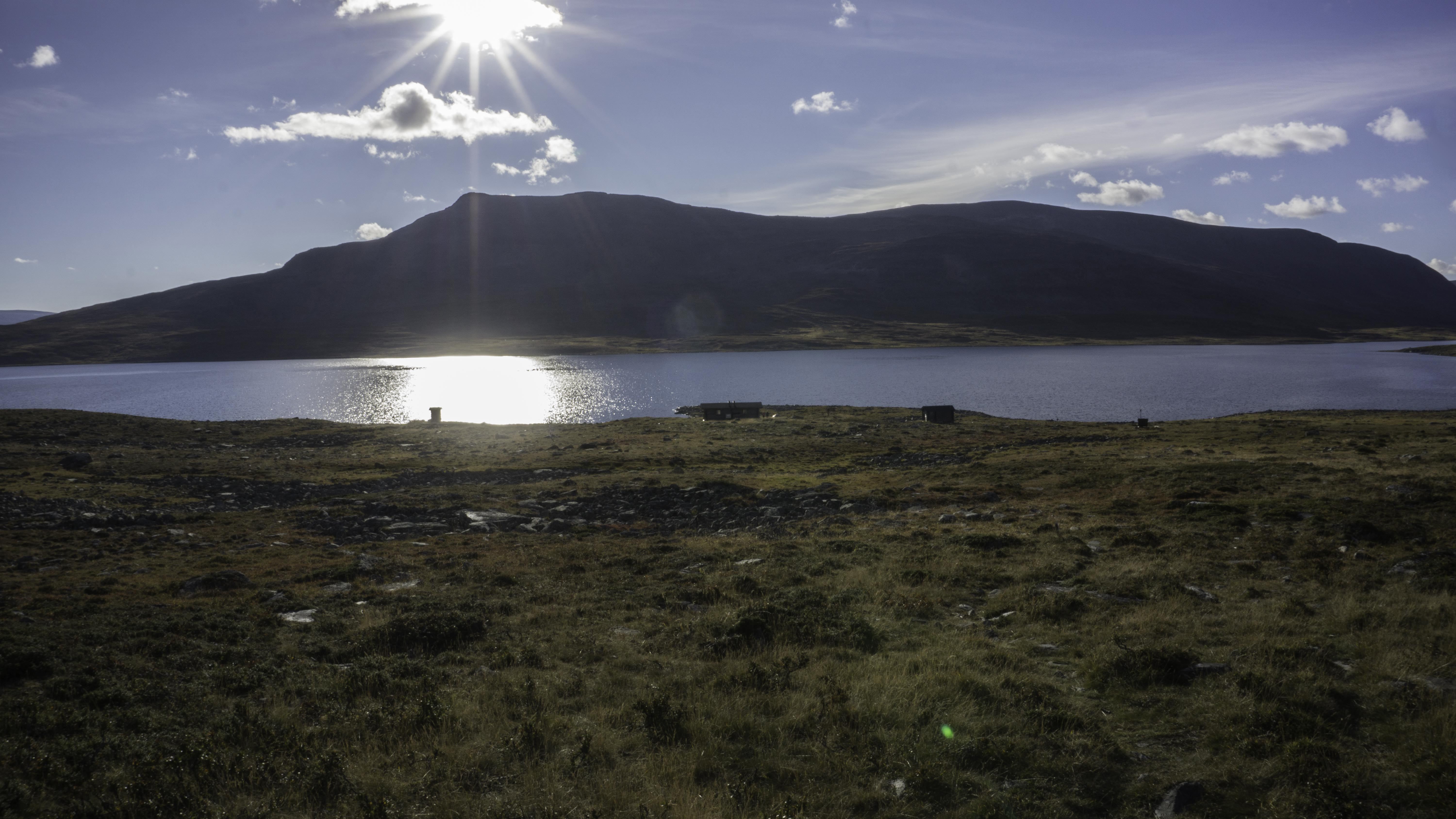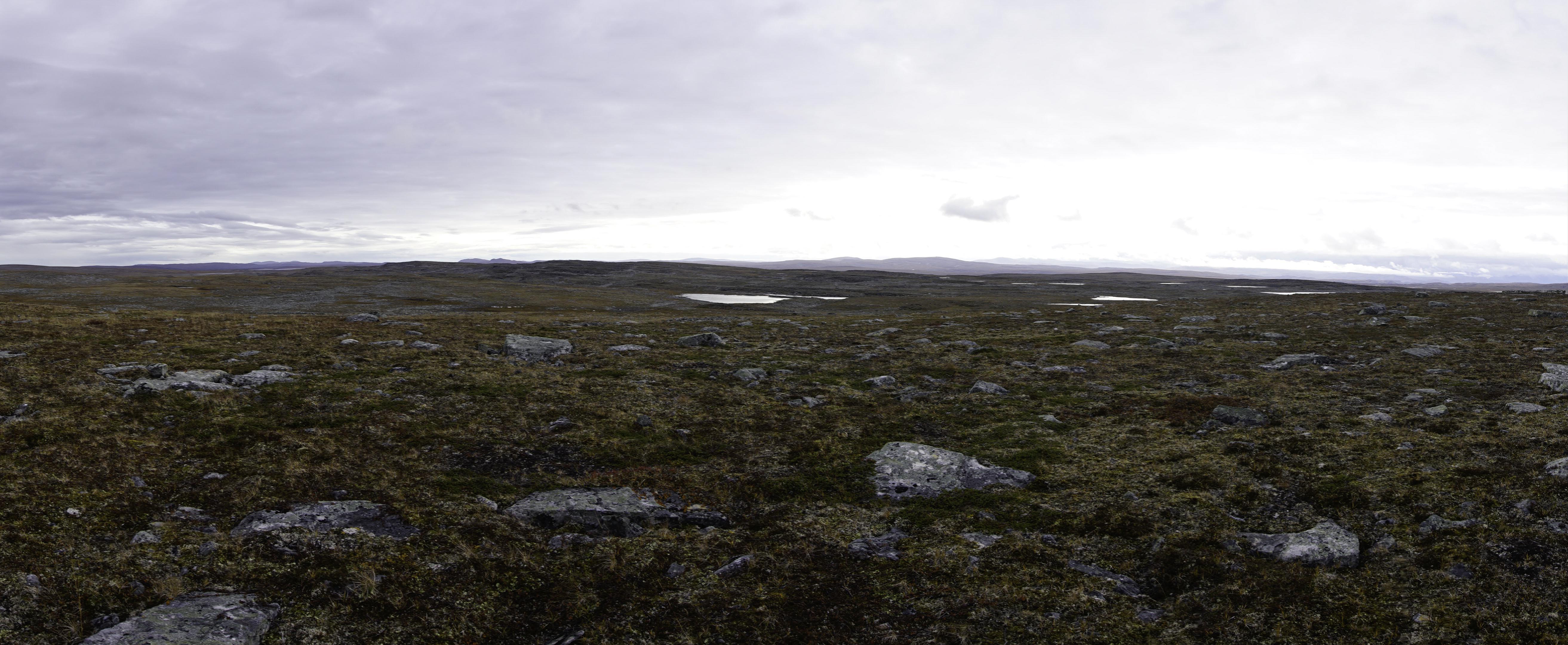 Irgenwan reissen die Wolken dann auf und wir sehen das gesamte Nabar vor uns liegen. War das Gelände gestern noch sehr bergig, sind wir nun wohl wirklich auf einem Plateau angekommen. Nur mit Karte und Kompass zu navigieren wird langsam schwierig, denn die meisten Seen liegen in Senken versteckt und so müssen wir für eine bessere Navigation immer wieder einen der vielen kleinen Hügel besteigen um eine bessere Sicht zu haben. So passiert es dann auch das wir beim Guhkes Hoallouoppal die Landbrücke verpassen und viel zu weit nördlich sind. Wir passieren den See am Nordende und halten auf den 724m hohen Hoallovarri zu der uns als Referenzpunkt dient. Dabei weichen wir immer wieder Sumpfwiesen aus die uns zu einer Kurskorrektur zwingen.