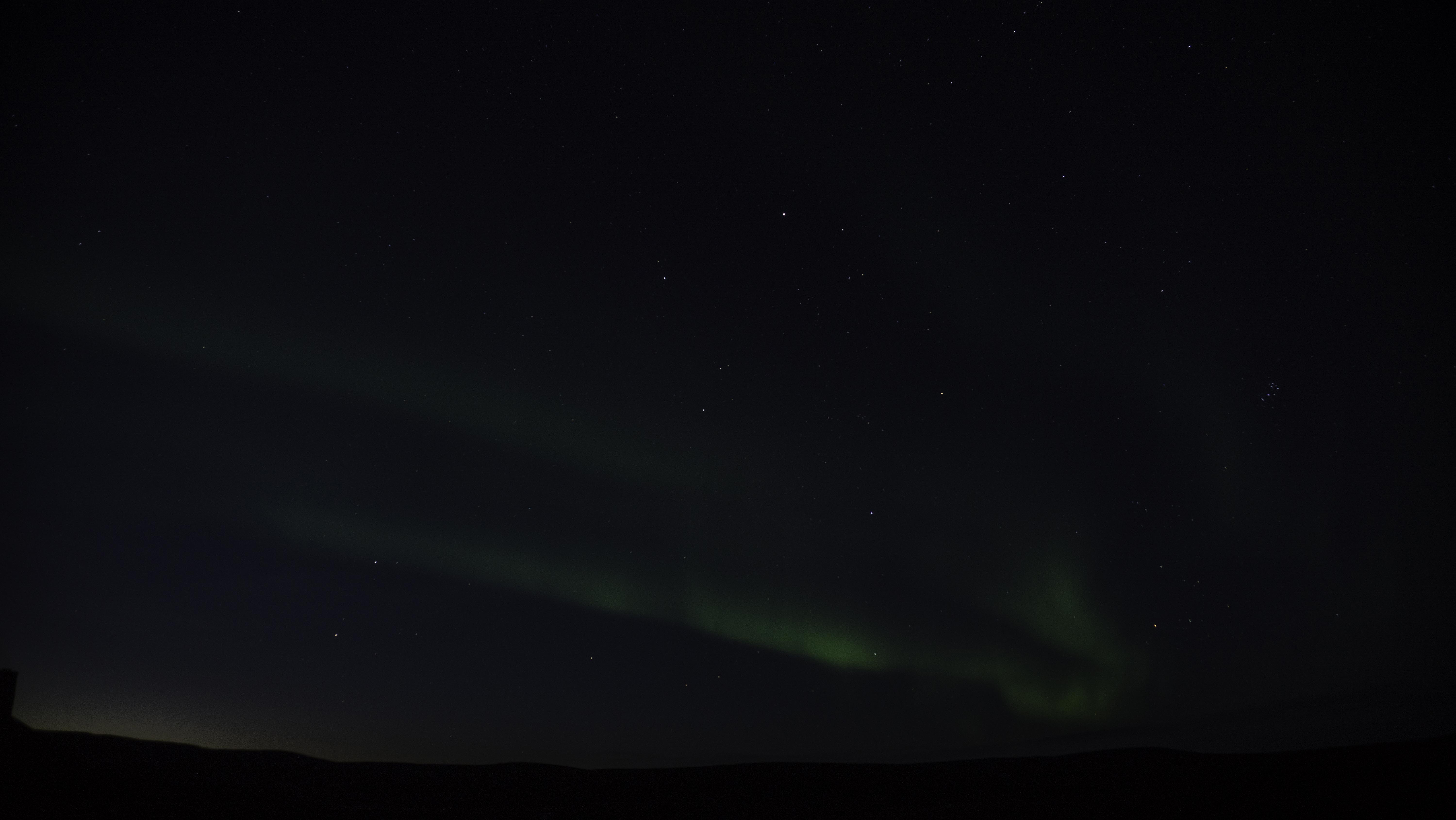 Und dann beginnt es wieder. Langsam baut sich in der Ferne in Richtung Reisadalen die Aurora auf. Wie weggeblasen ist der Gedanke an den beinahe Unfall von eben. Ich stürze rein und hole die Kamera und genieße das Schauspiel der Polarlichter über meinem Kopf.