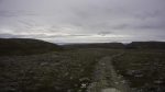 Am kommenden Tag machen wir uns früh auf. Es ist ziemlich kalt und so starten wir sogar mit Handschuhen. Etwa 15 km dieser Quadspur liegen nun vor uns. Das schlimme ist man kann die Spur fast die gesamte Zeit in der Landschaft vor sich sehen. Aber die Aussicht ist dafür fantastisch. Zwei Anstiege haben wir zu bewältigen bevor es in das Eibydalen hinunter geht und als wir die Kuppe des ersten Anstiegs erreichen bleiben wir stehen und schauen in die Ferne. Da hinten am Horizont können wir den Altafjord sehen. Unglaublich! Nach vier Monaten im Fjell sehen wir wieder Meer und wann wenn nicht jetzt wird mir entgültig bewusst das es vielleicht noch 10 Tage bis an das Ziel sind und diese Tour die so lange geplant wurde nun fast zu Ende ist.