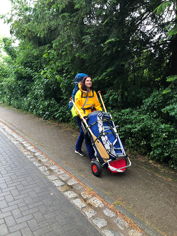 Die letzten beiden Touren sind wir mit dem Auto angereist. In diesem Jahr haben wir ganz entspannt die Bahn genommen. Als Startpunkt der Tour wählten wir Fürstenberg / Havel. Das kleine Städchen ist von Dortmund aus mit dem Zug in sechs Stunden Fahrtzeit erreichbar. Der einzige Nachteil am Bahn fahren ist nur, das IC´s oder ICE´s nicht wirklich Faltboot kompatibel sind. Unser Bootswagen mit dem großen Packsack stand auf hin und Rückfahrt ständig im Weg herum.