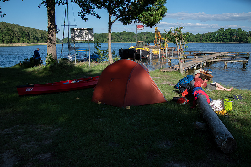 Nachdem wir die Havel verlassen haben, geht es für ein paar Kilometer über den Käbelicksee hinüber zum Camping Naturfreund an dessen Ufer wir unsere Tour beenden. Am Nachmittag gibt es eine kleine Regenpause die wir sofort nutzen und nach Kratzeburg rein laufen um uns etwas umzuschauen. Auch hier gibt es wieder einen Fischer der leckere Räucherprodukte verkauft. Das Abendbrot ist gerettet!