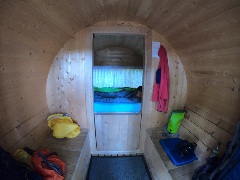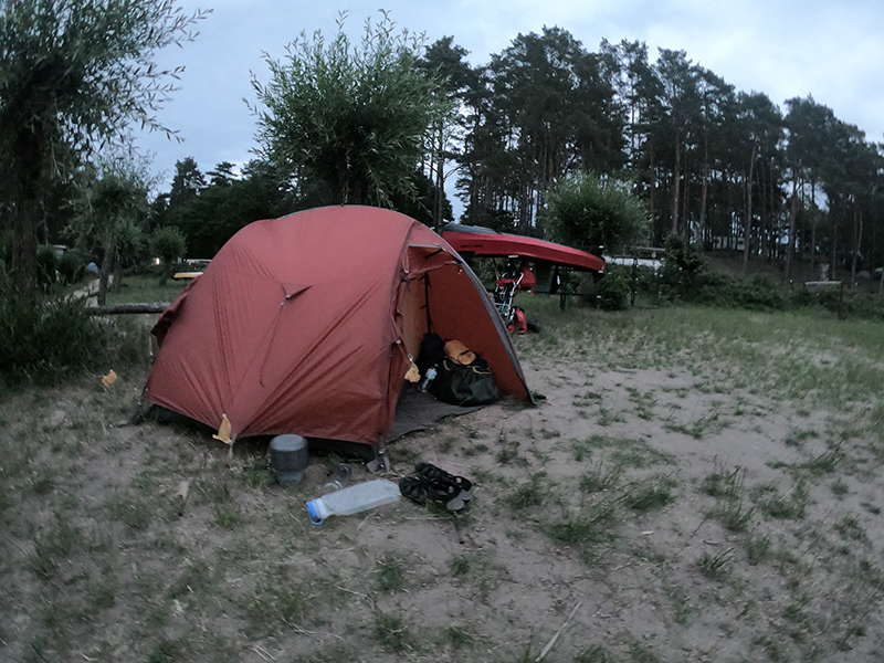 Wieder auf dem Camping zurück gibt es eine kurze Regenpause. Doch das nächste Gewitter zieht bereits heran. Wir nutzen dieses kuze Zeitfenster um schnell das Zelt aufzubauen und die Sachen unterzubringen. Dann fängt es wieder an zu kübeln. Fast Zeitgleich setzte die Sirene der Ortschaft ein um die Wehrleute der freiwilligen Feuerwehr zu informieren. Mit uns unter der überdachten Bank sitzt ein Ornithologe aus Sachsen, der hier jedes Jahr her kommt und uns etwas beruhigt. Diese Art der Gewitter wären hier völlig normal und es komme öfters vor das mehrere Gewitter aus verschiedenen Richtungen aufziehen würden. Irgendwann ist der Spuk dann auch vorbei und wir kriechen in unsere Schlafsäcke.