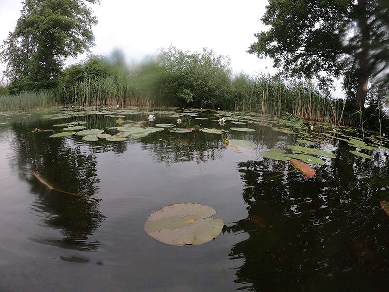 Dieser muss nun einmal der Länge passiert werden. 2013 hatten wir das bei Wind, ordentlich Regen und aufziehenden Gewitter. Da hatte es damals keinen Spass gemacht über den See zu schippern. Heute schaut es ganz anders aus. So wie schon die letzten Tage ist das Wetter einfach nur bombastisch. Es ist warm, die Sonne strahlt vom Himmel und es geht kaum ein Lüftchen. Also eigentlich perfektes paddel Wetter. Beim letzten Mal als wir in die Schwaanhavel gepaddelt sind, hatten wir warme Kleidung und Regenjacken an. Heute scheint der Tag dafür entschädigen zu wollen.