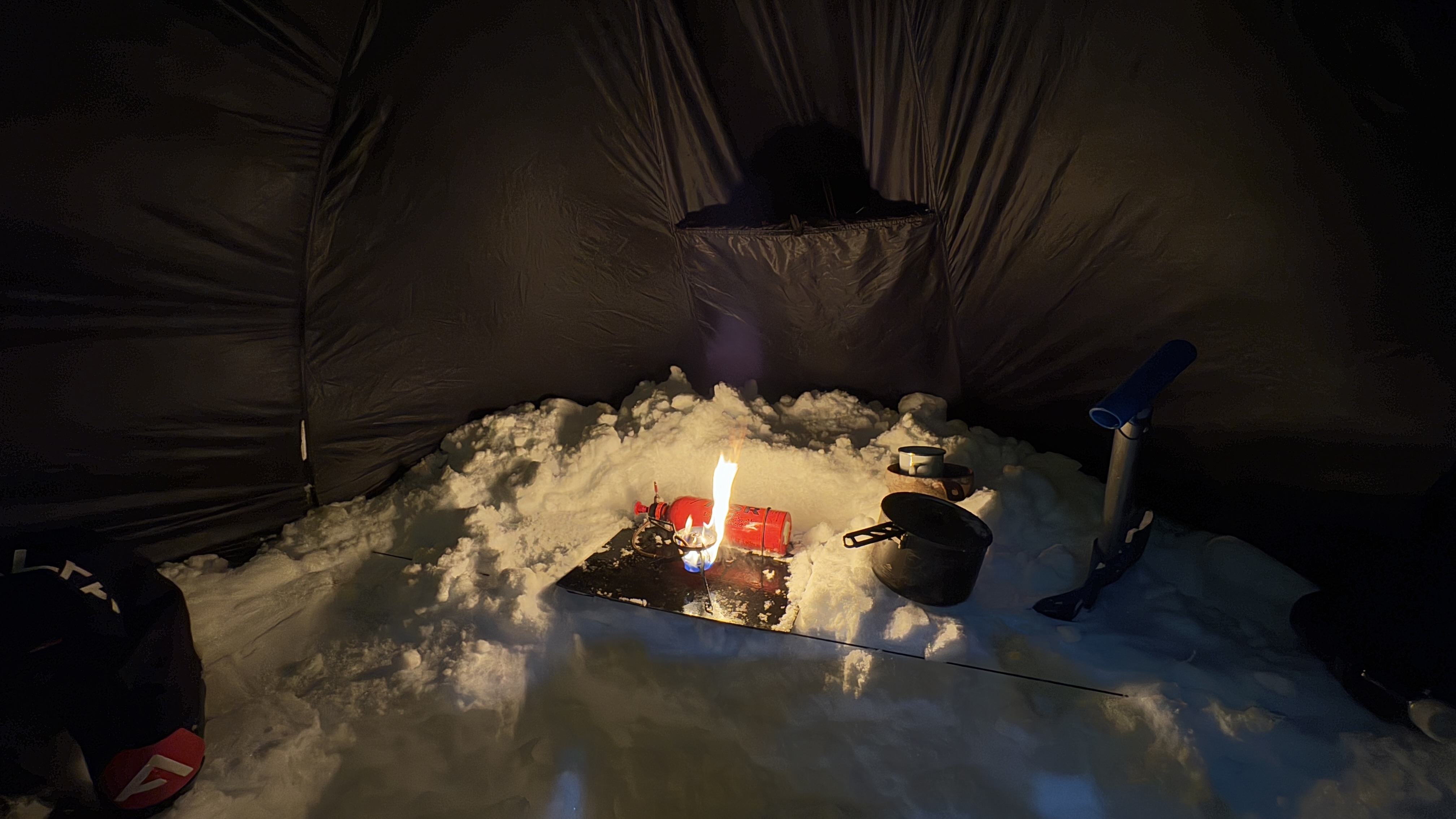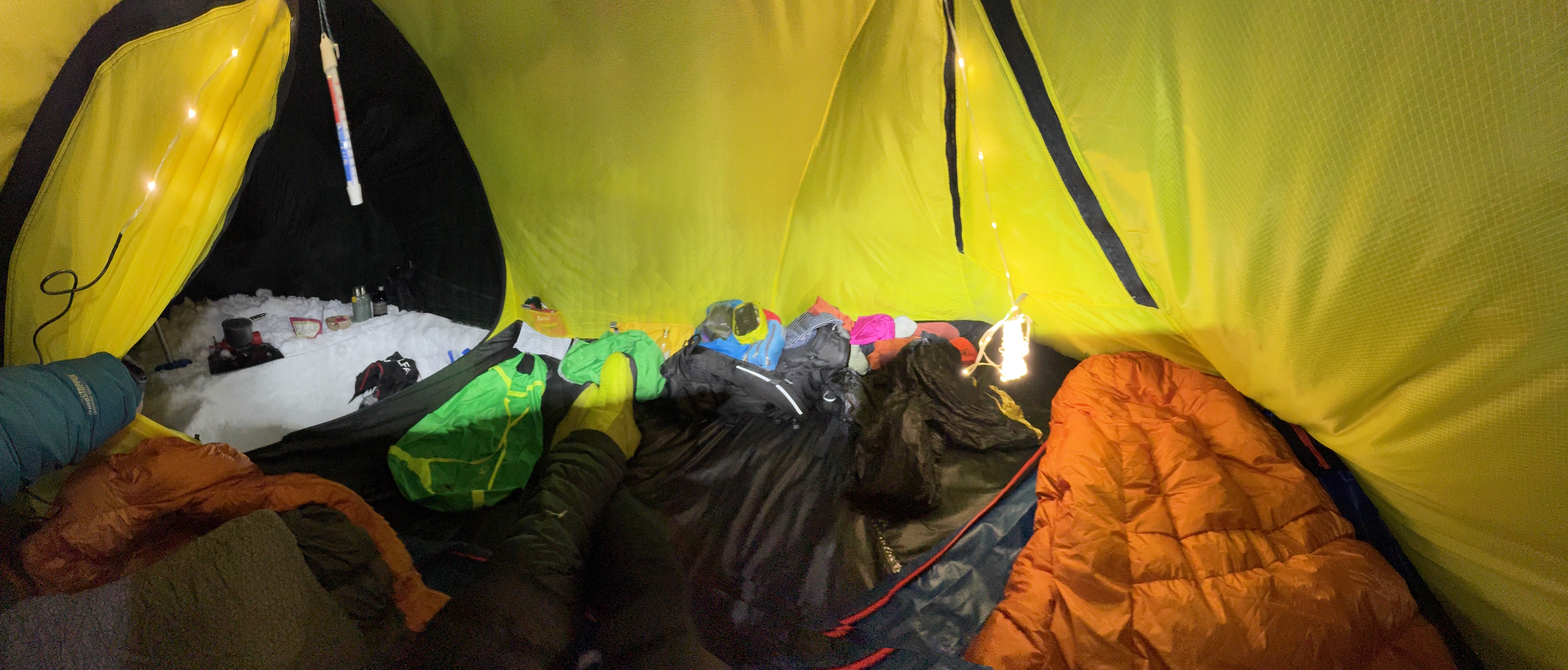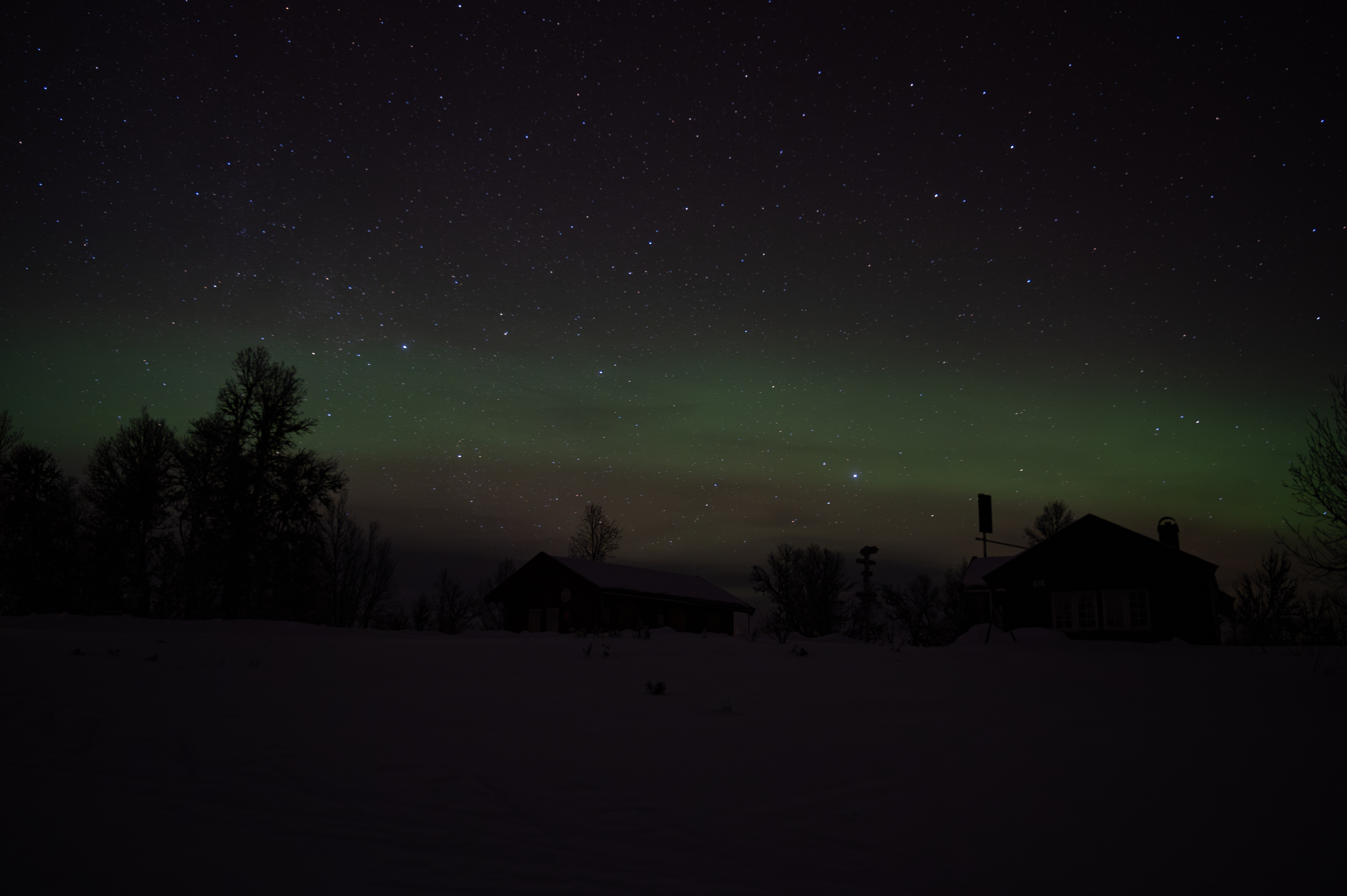 Irgendwann wird es mir dann doch zu frisch und ich gehe rein und koche mir mein Abendessen. Später kommt noch ein Niederländer auf Schneeschuhen herein. Wir kommen schnell ins Gespräch und es wird ein echt interessanter Abend, der sogar noch mit Polarlichtern am Horizont zu Ende geht.